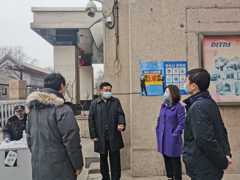2020年2月25日,東城區人民代表大會常務委員會黨組成員、副主任、區總工會主席許匯和交道口街道辦事處有關負責人以“四不兩直”的形式對北京一輕研究院菊兒園區疫情防控及復工復產情況進行了檢查指導。北京一輕研究院黨委書記、院長、院疫情防控工作領導小組組長韓松、工會主席崔學軍陪同檢查。